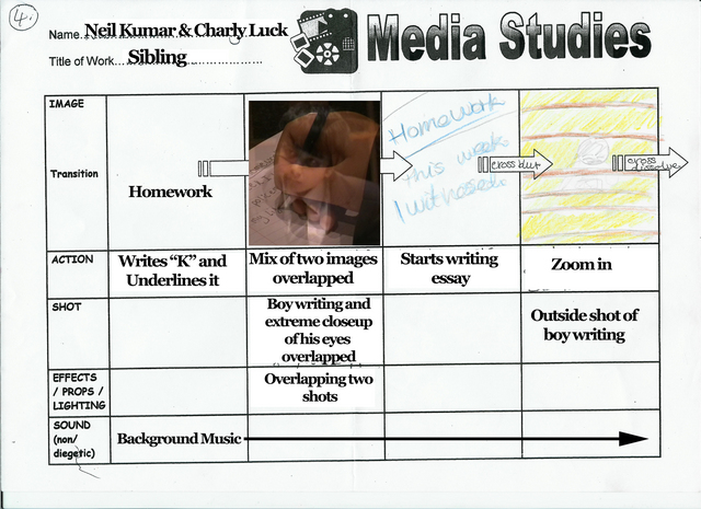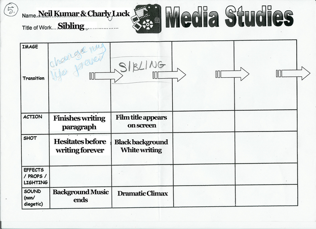 Opening Sequence - This is set after those events have taken place as the younger brother arrives home from school a week later and is given an extended writing homework assignment to write about events occurring in the last week and how they have affected him, as he witnessed his brothers death, that week had affected him deeply and would probably be remembered forever.